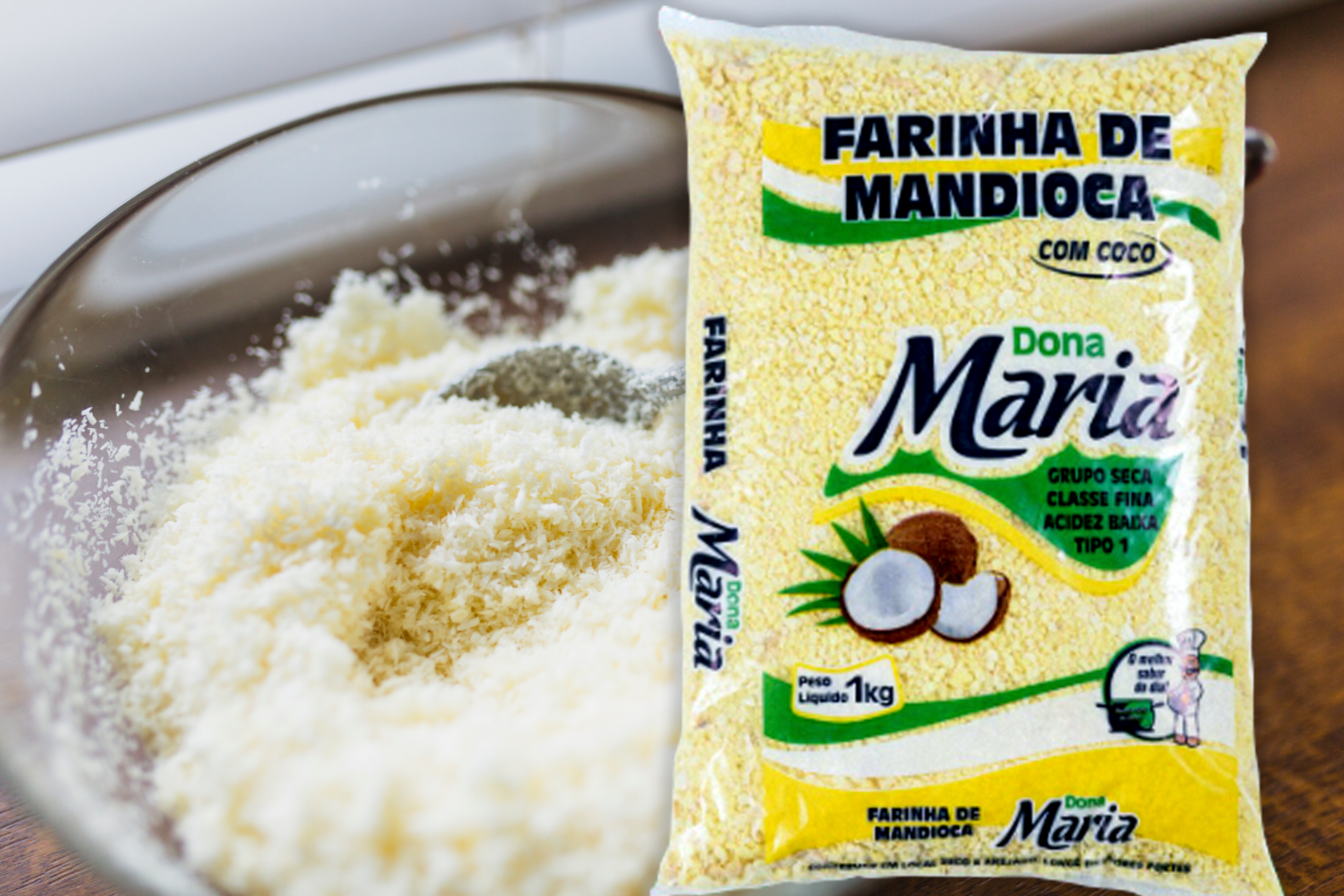 Farinha de Mandioca Dona Maria - Amarela, Fina, com coco - 1 kg - Tipo 1.